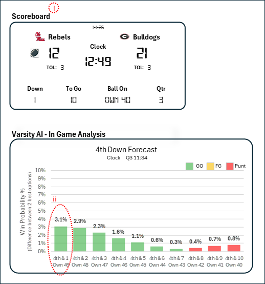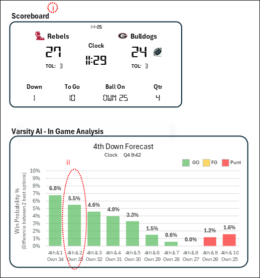 • Georgia ends up facing 4th & 2. This is a “hard GO— the best option by a margin of more than 5%. (ii)