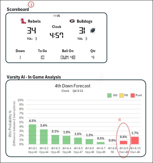 • Georgia ends up facing 4th & 5. This is a “hard Punt— the best option by a margin of more than 5%. (ii)